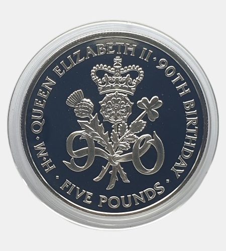 Great Britain 5 pounds 2016. Elizabeth II. 90th Birthday. UNC