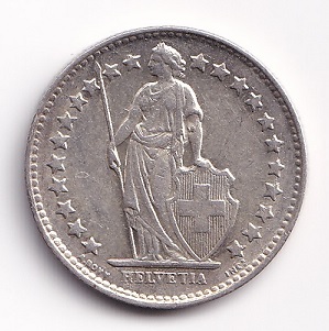 Switzerland ½ francs 1945. Helvetia. AU-UNC
