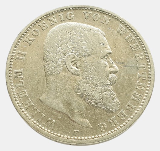 Wurttemberg 5 mark 1903. Wilhelm II. XF-