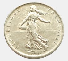 Франция 5 франков 1875. Ceres With Motto. XF-