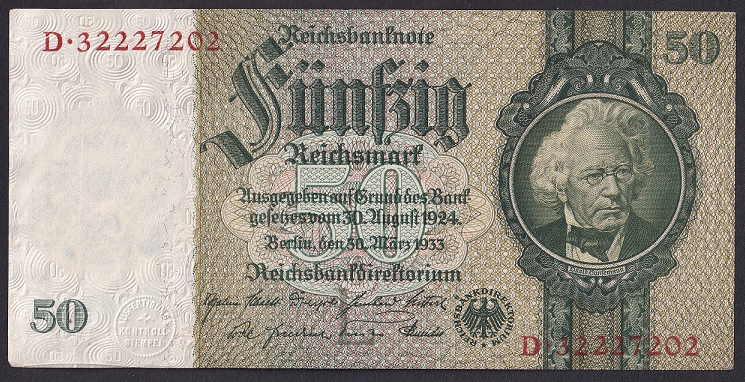 Германия 50 рейхсмарок 1933. AU-UNC. P-182