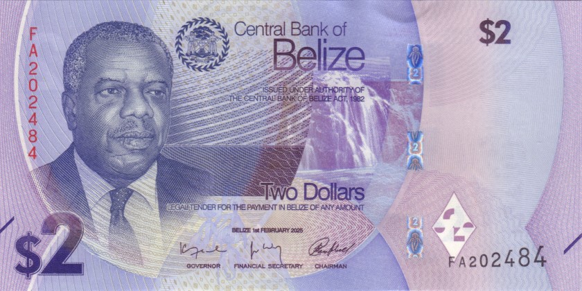 Белиз 2 доллара 2025. UNC. P-W73