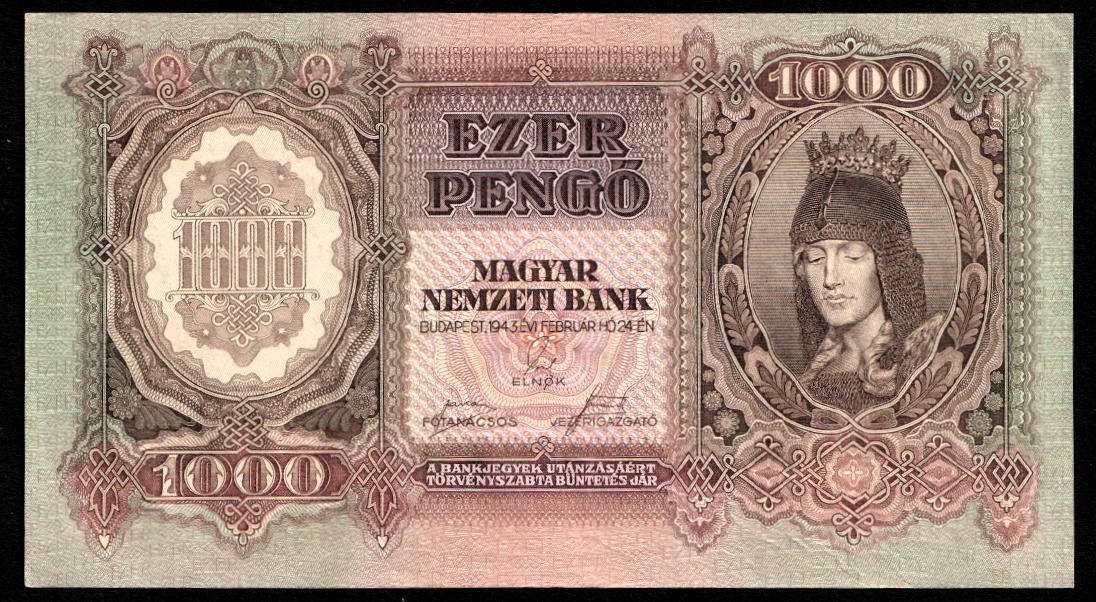 Венгрия 1000 пенго 1943. UNC. P-116