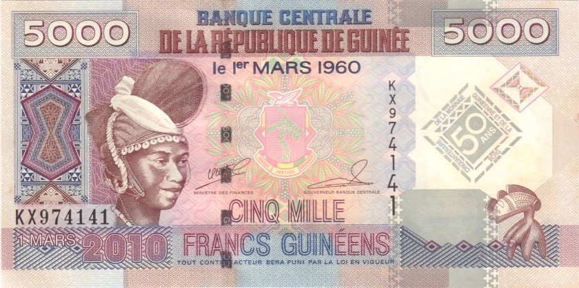 Гвинея 5000 гвинейских франков 2010. UNC. P-44b