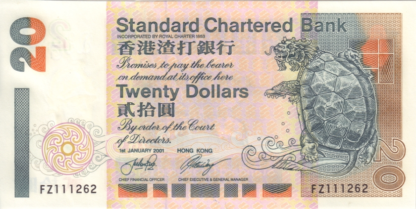 Гонконг 20 гонконгских долларов 2001. UNC. P-285c