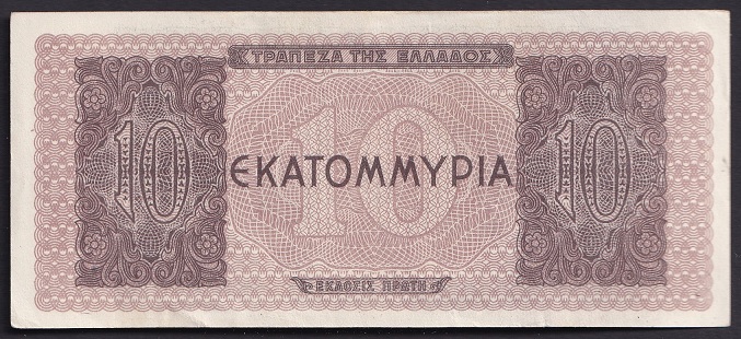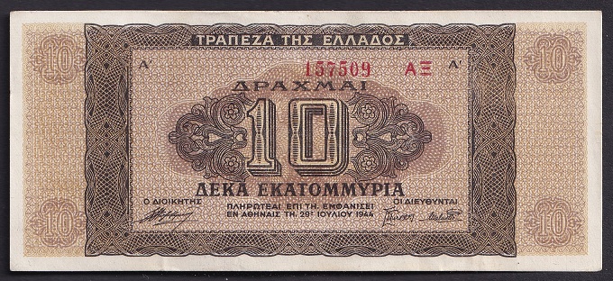 Греция 10.000.000 драхм 1944. AU-UNC. P-129