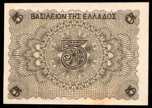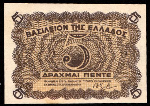 Греция 5 драхм 1945. UNC. P-321
