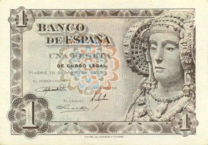 Испания 1 песета 1948. UNC. P-135