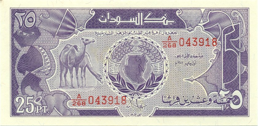 Судан 25 пиастров 1987. UNC. P-37