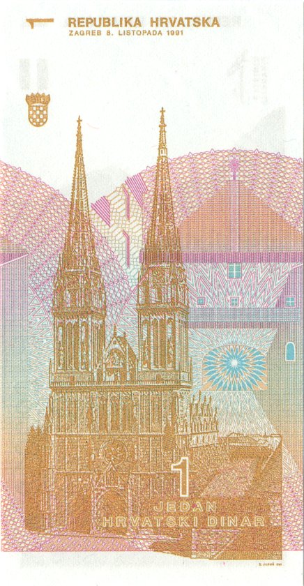 Хорватия 1 хорватский динар 1991. UNC. P-16