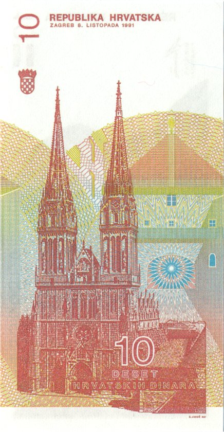 Хорватия 10 хорватских динаров 1991. UNC. P-18