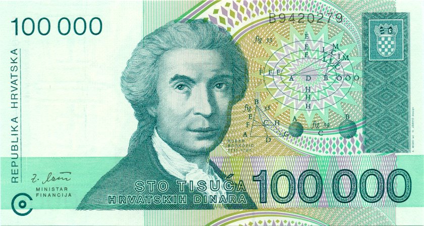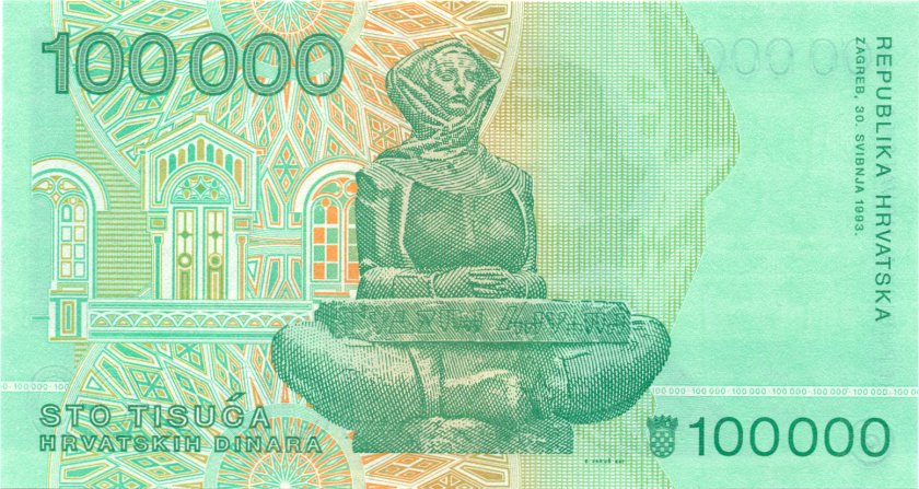 Хорватия 100.000 хорватских динаров 1993. UNC. P-27