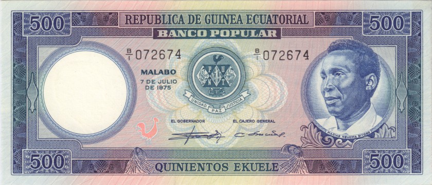 Экваториальная Гвинея 500 экюеле 1975. UNC-. P-7