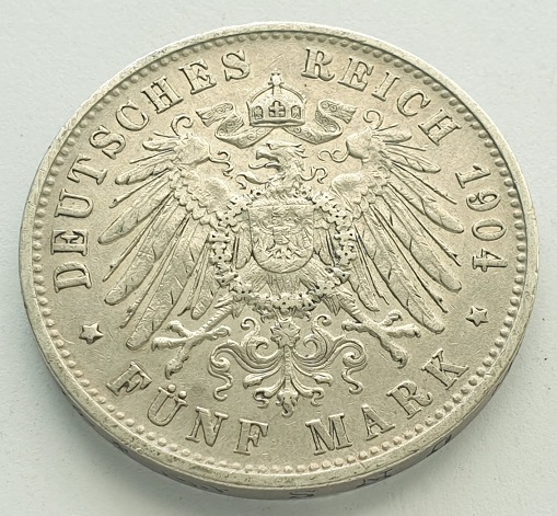 Вюртемберг 5 марок 1904. Wilhelm II. XF-