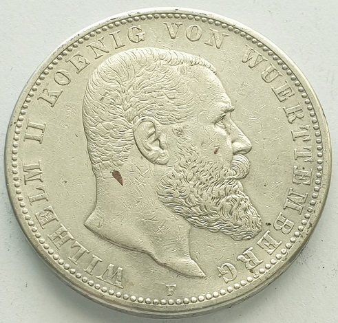 Вюртемберг 5 марок 1907. Wilhelm II. XF