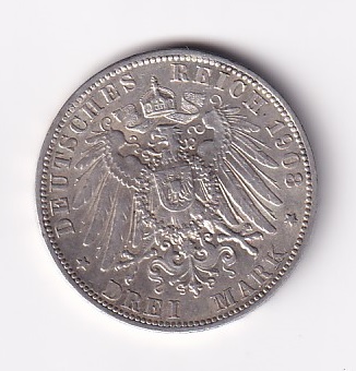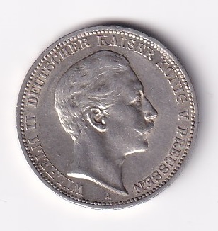 Пруссия 3 марки 1908. Wilhelm II. XF-AU