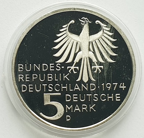 Германия ФРГ 5 марок 1974. Immanuel Kant. PROOF
