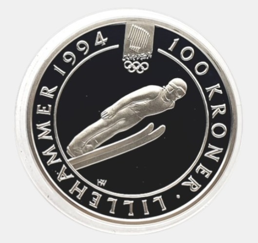 Норвегия 100 крон 1992. Harald V. 1994 Winter Olympics-Olympische Winterspiele. PROOF