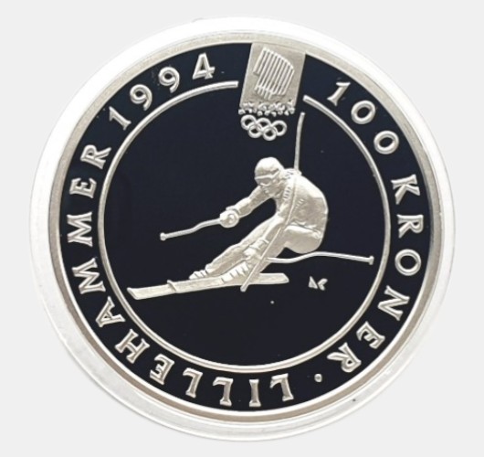 Норвегия 100 крон 1993. Harald V. 1994 Winter Olympics-Alpine Skiing. PROOF