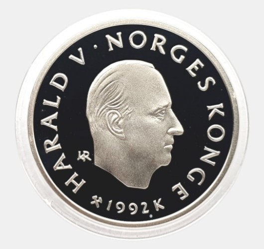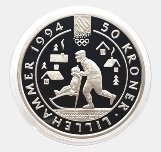 Норвегия 50 крон 1992. Harald V. 1994 Winter Olympics. Grandfather and Child. PROOF